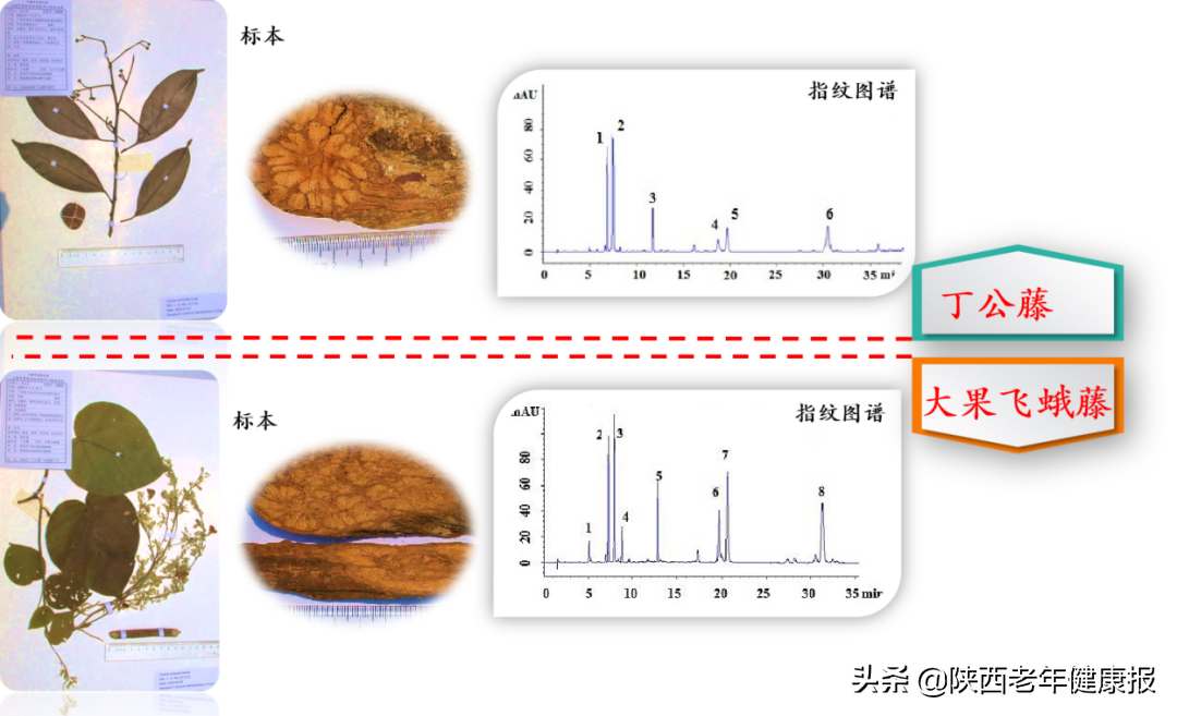 丁公藤、大果飞蛾藤的植物标本、药材及高效液相指纹图谱